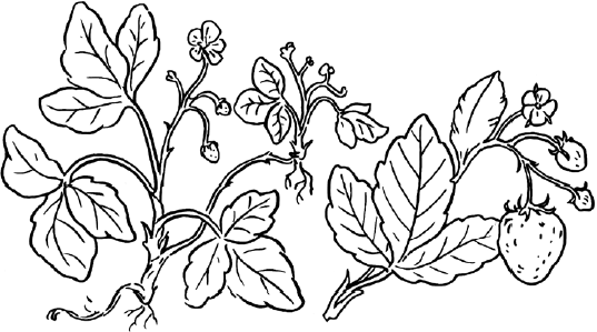 На картинке клубника. Относится к семейству Розоцветные (Розовые). У них плод костянка, сборная костянка или многоорешек, формула цветка Ч5Л5Т∞П∞, соцветие кисть, зонтик или щиток.