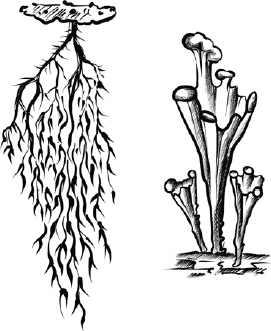 Грибы и растения неподвижны, постоянно растут верхушечной частью. Питаются осмотрофно, поглощая питательные вещества, растворённые в воде. Имеют прочные клеточные стенки (у грибов они из хитина, а у растений из целлюлозы).