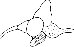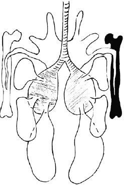 Дыхательная система. Вода поступает через ротовое отверстие в глотку, выходит через жаберные щели в околожаберную полость, а оттуда во внешнюю среду через отверстие – атриопор. В жаберных щелях происходит газообмен между водой и кровью, которая течет по сосудам, окутывающим жаберные щели (цифра 4). Также кислород может поступать в организм через поверхность тела (кожный газообмен).