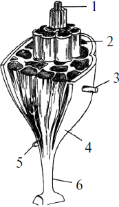 Каким номером на рисунке показана структура, принимающая участие в амортизации прилегающих тканей?