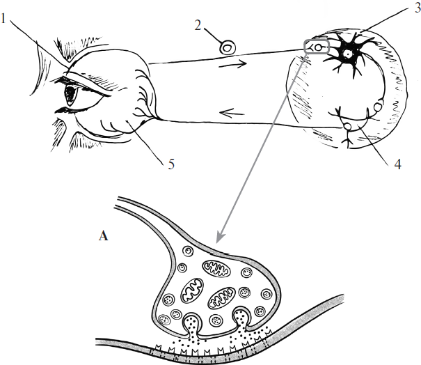 Каким номером на рисунке обозначена структура, содержащая в себе отростки двигательных нейронов?