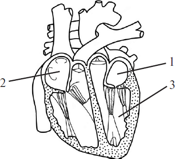 Под цифрой 1 на рисунке обозначено левое предсердие - конец малого круга кровообращения, в которое впадает 4 легочные вены, несущие артериальную кровь из легких (из малого круга). Под цифрой 2 обозначено правое предсердие - конец большого круга, куда впадают верхняя и нижняя полые вены, несущие в себе венозную кровь от органов из большого круга. Под цифрой 3 - левый желудочек, начало большого круга кровообращения, из него выходит аорта. Стенка левого желудочка, а именно средний слой - миокард очень толстый!