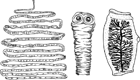 Рассмотрите рисунок с изображением бычьего цепня и определите тип приспособления, форму естественного отбора и путь эволюции, которые привели к формированию бычьего цепня. Заполните пустые ячейки таблицы, используя элементы, приведённые в списке. Для каждой ячейки, обозначенной буквой, выберите соответствующий элемент из предложенного списка.
