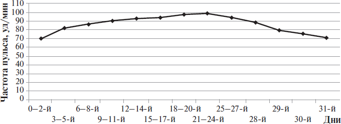 Ученые изучали динамику изменения частоты пульса в течении одного месяца, изменяя интенсивность физической нагрузки. На графике отмечены показатели пульса в течении 30-ти дней. Какой параметр задаётся экспериментатором (независимая переменная), а какой параметр меняется в зависимости от него (зависимая переменная)? Какую нулевую гипотезу смог сформулировать исследователь перед постановкой эксперимента? В области каких сосудов можно прощупать пульс? Укажите пример сосуда в области запястья.