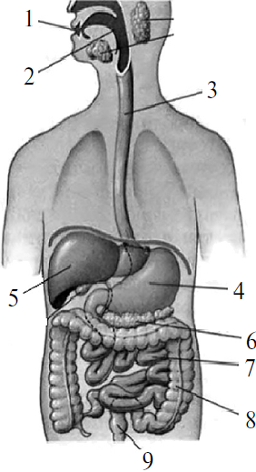 Какой орган изображен на рисунке под цифрой 8? Укажите все его отделы, а также не менее трёх функций этого органа.