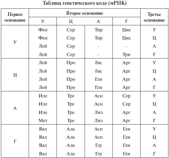 С молекулы иРНК находим последовательность аминокислот в белке по таблице генетического кода: