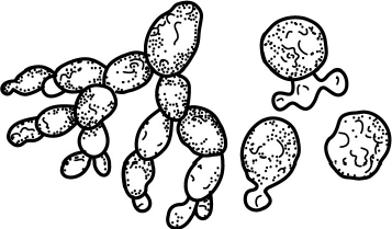 На рисунке изображены дрожжи - это одноклеточные грибы. Они размножаются путём почкования - на теле материнской особи (клетки) появляется небольшой вырост (почка), а затем происходит отделение (отпочковывание) дочерней особи. Почкование характерно для одноклеточных (дрожжи) и многоклеточных (кишечнополостные: гидра) организмов. Самой простой формой бесполого размножения является бинарное деление - обычное деление исходной материнской клетки на две дочерние. Распад тела многоклеточного организма на две или более части, которые затем превращаются в самостоятельных особей - это фрагментация.
