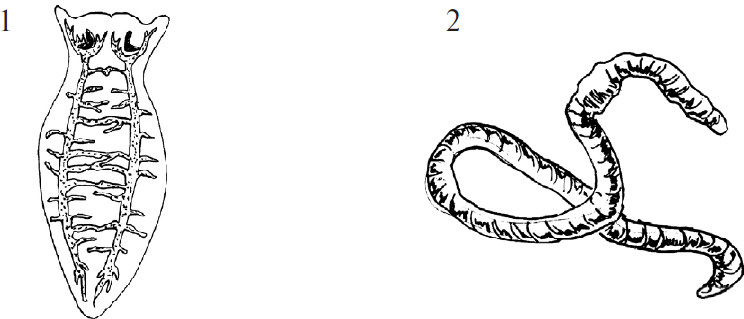 Каким номером на рисунке обозначен представитель класса ленточных червей?