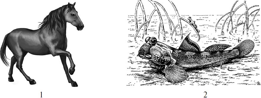 На рисунке 1 изображена лошадь, она относится к млекопитающим. Рисунок 2 – рыба. Кровеносная система рыб замкнута. Сердце двухкамерное, состоящее из предсердия и желудочка. Венозная кровь из желудочка сердца поступает в брюшную аорту, несущую ее к жабрам, где она обогащается кислородом и освобождается от углекислого газа. Оттекающая от жабр артериальная кровь собирается в спинную аорту, которая расположена вдоль тела под позвоночником. От спинной аорты к различным органам рыбы отходят многочисленные артерии. В них артерии распадаются на сеть тончайших капилляров, через стенки которых кровь отдает кислород и обогащается углекислым газом. Венозная кровь собирается в вены и по ним поступает в предсердие, а из него — в желудочек. Следовательно, у рыб один круг кровообращения. Сердце у млекопитающих четырехкамерное, как и у птиц. Поэтому выделяется два круга кровообращения. Имеется левая дуга аорты. Все органы и ткани тела снабжаются чистой артериальной кровью.