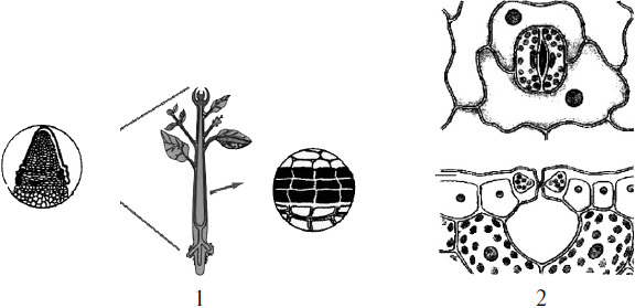 Каким номером на рисунке обозначена ткань, участвующая в транспирации?