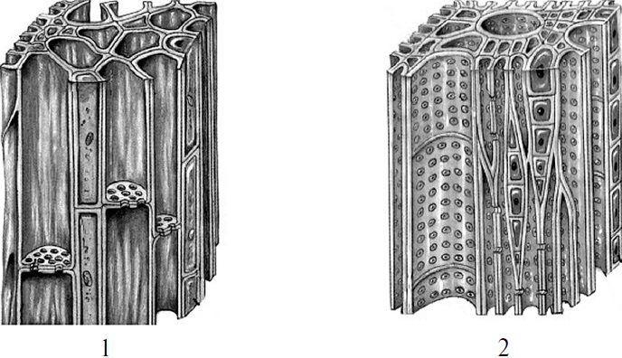 На рисунке под цифрами проводящие ткани: 1 - флоэма, 2 - ксилема.