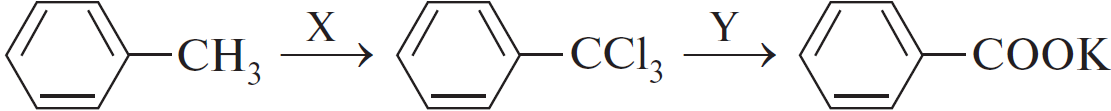 $CH_3CH_2CH_2Cl →↖{X} CH_3CH_2CH_2OH →↖{Y} CH_3CH_2COH$