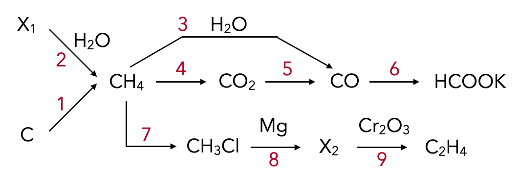 1. Из углерода можно получить метан синтезом из простых веществ: $C + 2H_2 = CH_4$