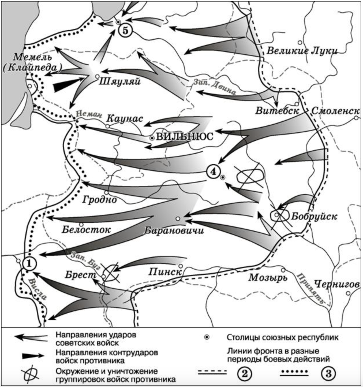 «Во время одного из наступлений на Восточном фронте, немецкие войска, продвигаясь с запада, захватили Гродно и Вильню. Затем они направились на восток, стремясь к важному транспортному узлу, расположенному на пересечении железных дорог вблизи города _____________. Захват города позволил бы немцам выйти к реке Припять, а далее захватить плодородные территории по Днепру. Но несмотря на угрозу окружения, русским войскам удалось стабилизировать фронт и предотвратить захват _____________.»