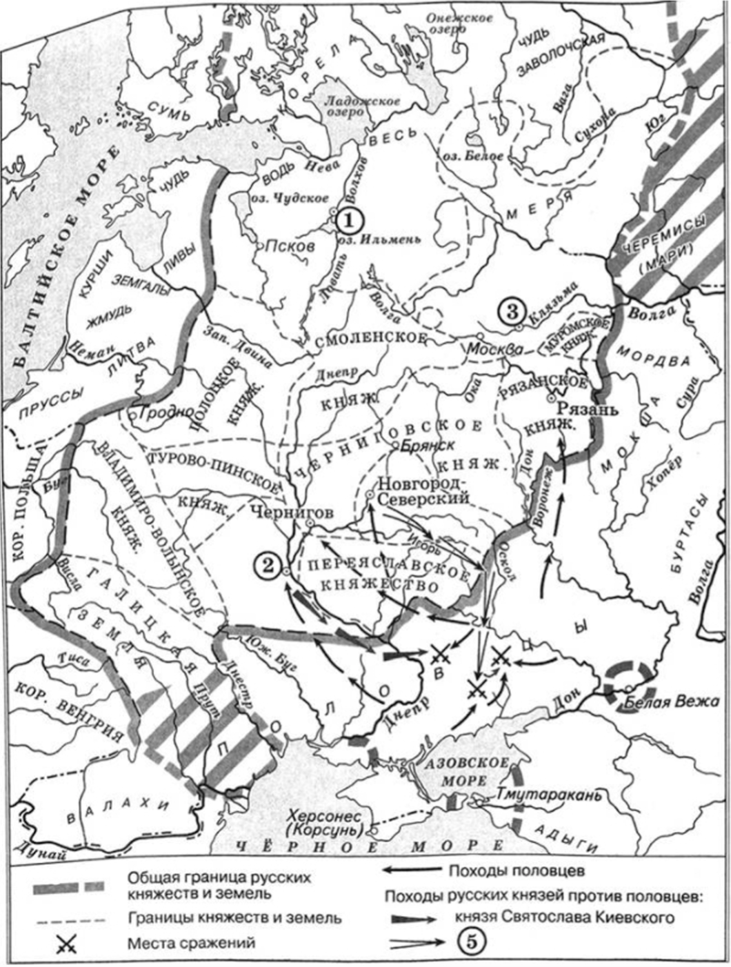 - Цифрой «5» в легенде схемы обозначены походы, события которых отражены в памятнике древнерусской литературы «Слово о полку Игореве».