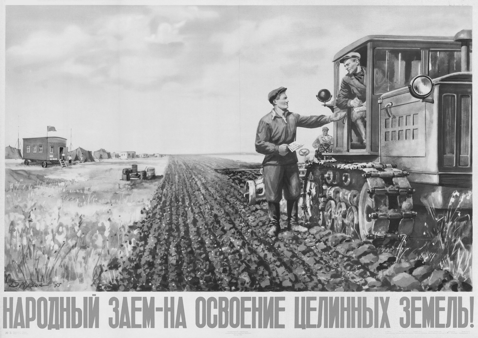 — Данный плакат посвящён началу кампании по освоению целинных земель, которая была начата в период правления Н.С. Хрущёва в 1954 году, следовательно данный плакат не мог быть выпущен ранее первой половины 1950-х годов.