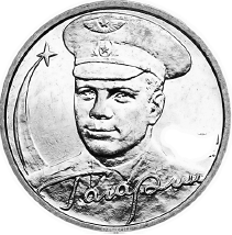 Какие из представленных монет посвящены событиям, которые произошли в период руководства страной политического деятеля, при котором была выпущена данная марка? В ответ запишите две цифры, под которыми они указаны.