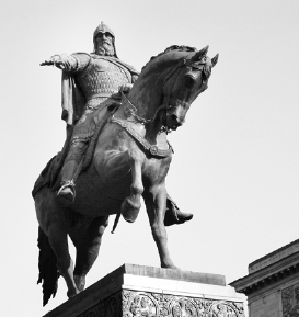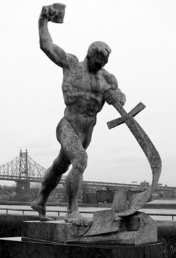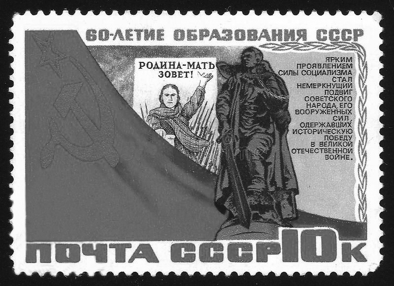 Какой из представленных ниже скульптурных памятников был построен в честь события, которому посвящена данная марка. В ответ запишите цифру, которой обозначен этот памятник культуры. Назовите автора данного скульптурного памятника.