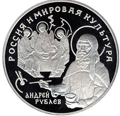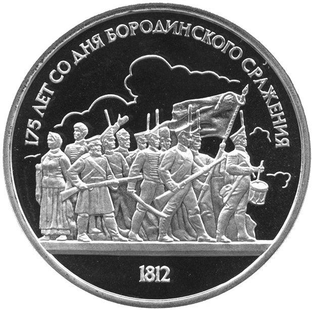 Кто из деятелей культуры, изображенных ниже, были современниками события, которому посвящена данная монета? В ответе запишите две цифры, которыми обозначены эти деятели культуры.