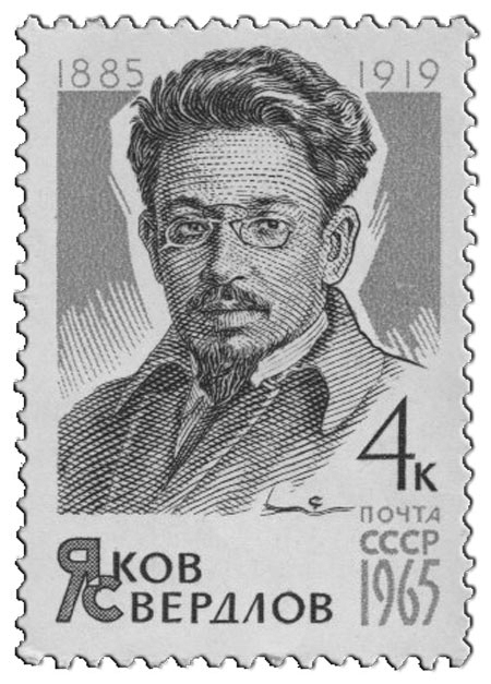 Какие из представленных марок посвящены событиям, произошедшим при жизни деятеля, изображённого на предыдущей марке? В ответе запишите две цифры, которыми обозначены эти марки.