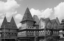 Какие из представленных памятников архитектуры, расположены в городе, упоминаемом на марке или в непосредственной близости от него? В ответ запишите две цифры, под которыми они указаны.