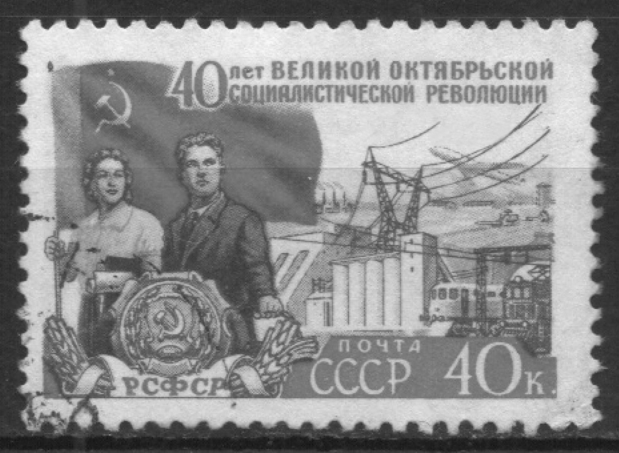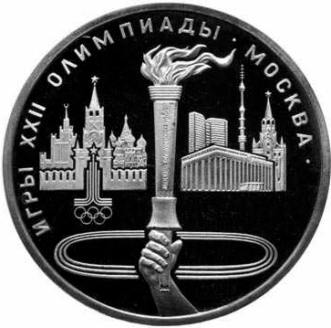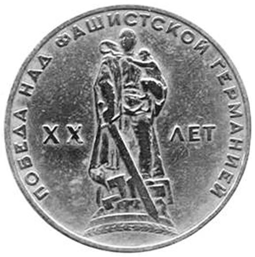 Какие из представленных ниже памятных монет были выпущены к юбилеям событий, которые произошли в период руководства СССР того же исторического деятеля, при котором была выпущена данная марка? В ответе запишите две цифры, которыми обозначены эти монеты.