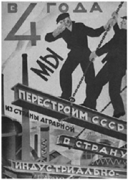 Какие из представленных ниже плакатов относятся к периоду правления руководителя СССР, при котором была выпущена данная монета? В ответе запишите две цифры, которыми обозначены эти плакаты.