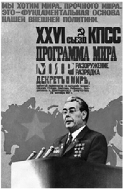 На картинах в задании под цифрой "1" изображен плакат посвященный олимпиаде 1980 года, которая прохода в СССР в годы руководства Л.И. Брежнева. Об этом становиться понятно по фотографии олимпийского мишки - символа олимпиады. На втором плакате прямо сказано о "пятилетних планах" развития народного хозяйства в СССР, которые начались при И.В. Сталине. На третьем плакате идет речь о "перестройке" - периоде руководства М.С. Горбачева. На четвертом плакате изображен сам Л.И. Брежнев и речь идет о XXVI съезде КПСС и принятии программы мира. Таким образом правильный ответ будет 14, так как плакаты под этими цифрами были выпущены в период руководства страной Л.И. Брежнева, как и монета, посвященная полету Юрия Гагарина.