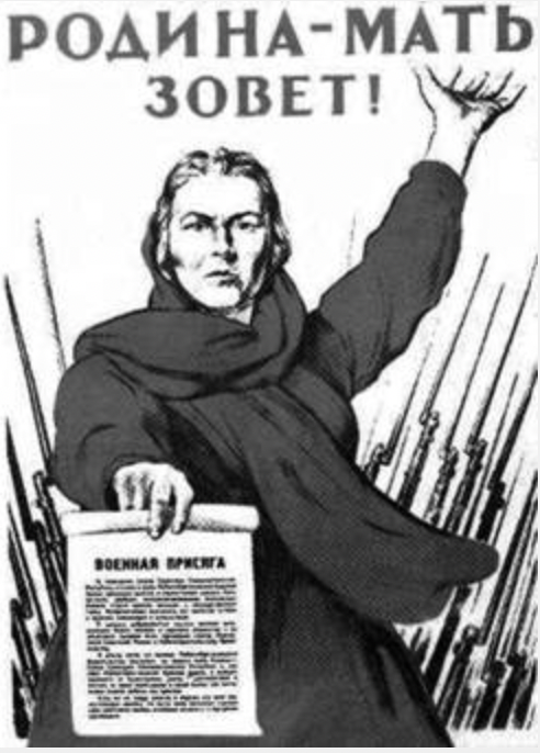 Какой из представленных ниже плакатов посвящен событиям, которые произошли в тот же год, когда город, которому посвящена монета, был взят в блокаду. Назовите художника, создавшего данный плакат.