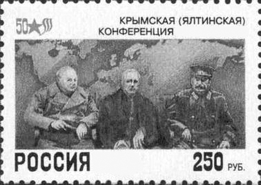 Марка посвящена Ялтинской конференции "Большой тройки", которая состоялась в феврале 1945 года. Так как ответ нужно записать сочетанием слов, то пишем: "сорок пятом".