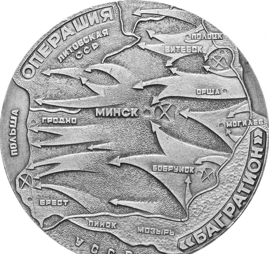 На медали указано, что она посвящена операции Багратион, кроме того в самом центре медали указан город Минск. Следовательно, медаль посвящена освобождению Белорусской ССР.
