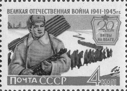 Данна марка 20-летию битвы на Волге. На Волге у нас была Сталинградская битва, длившаяся в период с лета 1942 по зиму 1943. Следовательно, раз нас спрашиваю год завершения битвы, то мы заканчиваем предложение на - сорок третьем.