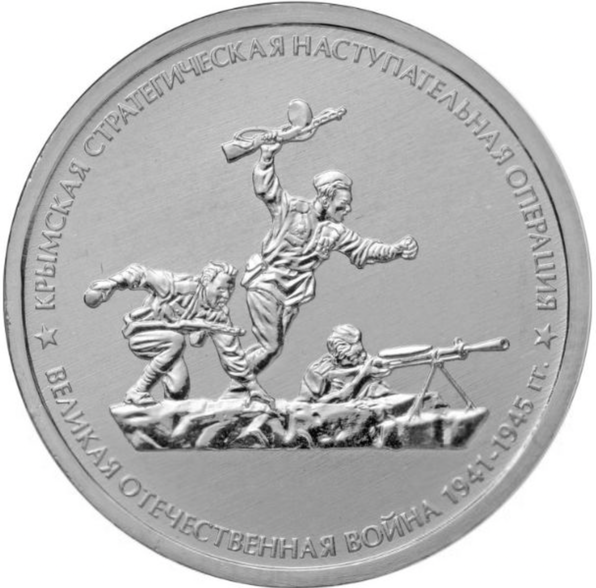 Данна монета посвящена крымской наступательной стратегической операции, которая проводилась в ходе 10 Сталинских ударов советской армии в 1944 году. Следовательно, верным ответом будет - сорок четвертом.