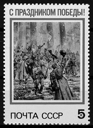 Данная марка посвящена празднику победы в годы Великой Отечественной войны. Советский союз одержал победу над немцами в мае 1945 года, следовательно ответ - май.