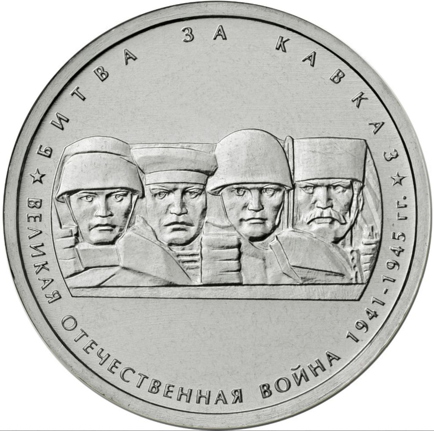 Данная памятная монета посвещена битве за Кавказ, которая началась летом 1942 г., а завершилась в октябре 1943. Следовательно, верный ответ - сорок третьем.