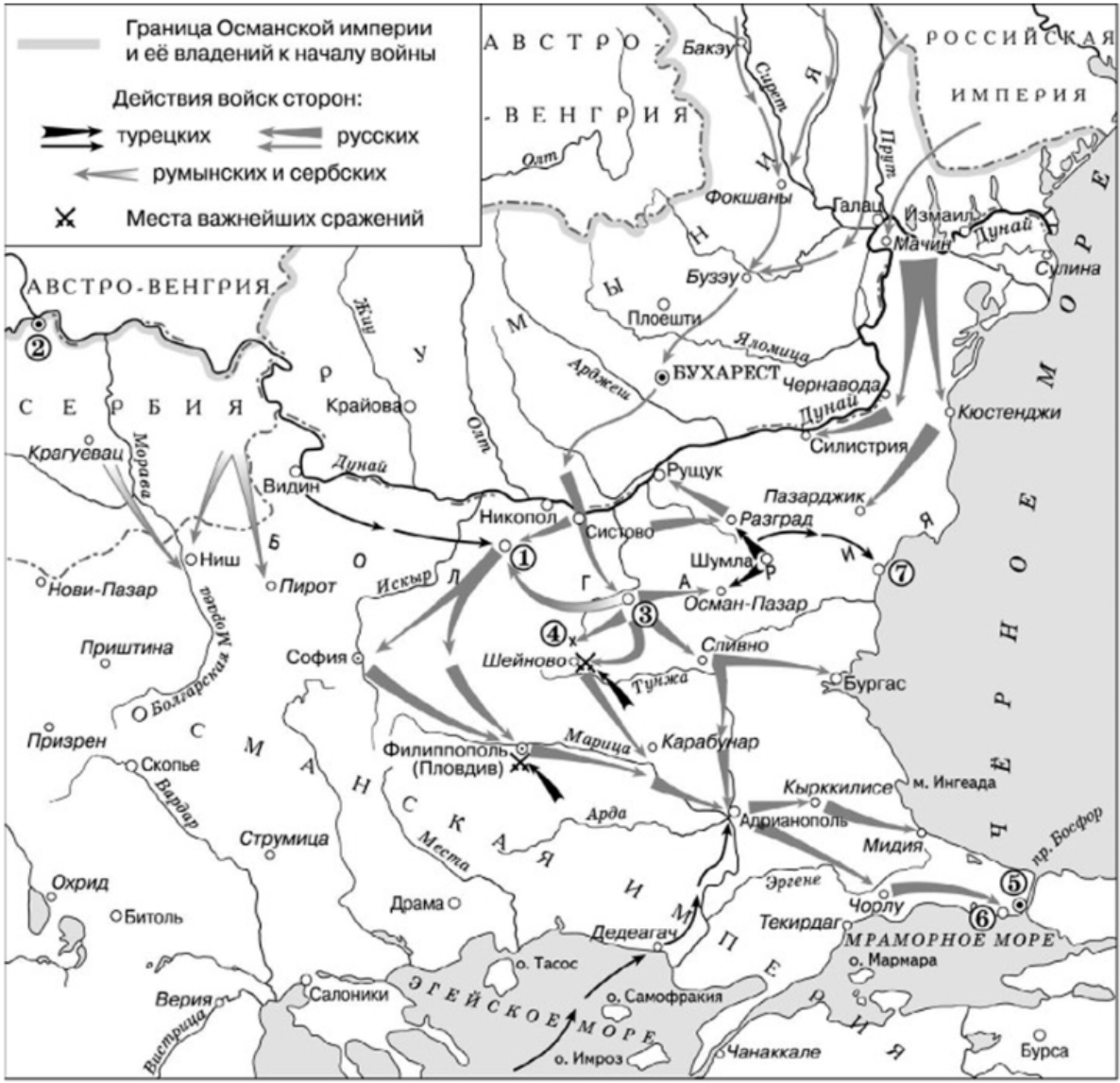Внимательно проанализируем данные карты. Географические наименования и театр военных действий подсказывают нам, что это одна из многочисленных русско-турецких войн. Так как русские войска дошли почти до столицы Турции Стамбула позволительно утверждать, что это война 1877-1878 годов. В тот период времени русским императором был Александр II.