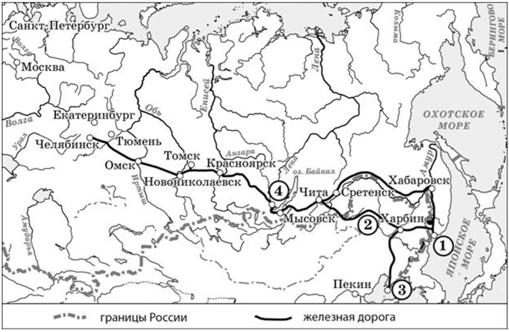 Внимательно проанализируем данные карты. Мы видим на ней железную дорогу, которая проходит практически через всю территорию России от Челябинская до Владивостока. Это транссибирская железнодорожная магистраль или же "транссиб", строительство которой было начало в 1891 году, когда императором в России был Александра III.
