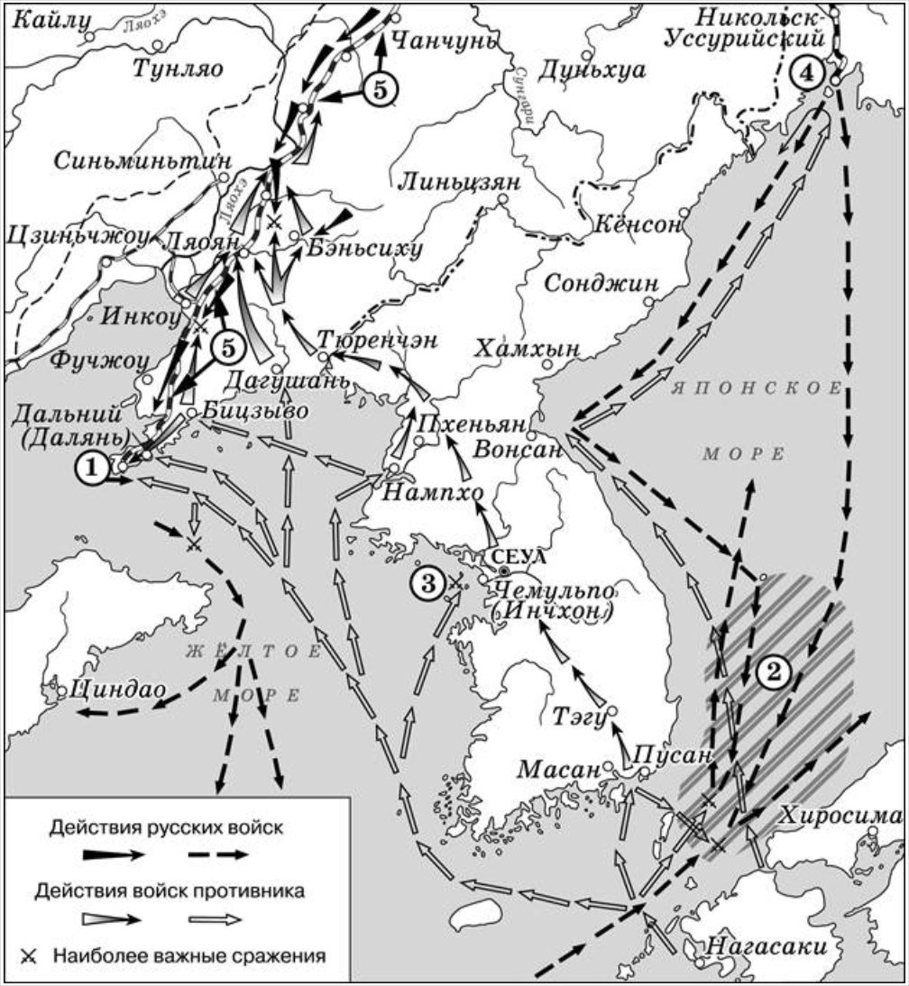 Данная карта посвящена русско-японской войне 1904-1904 годов, которая проходила в период правления императора Николая II. Мы это понимаем исходя из акцента на Корею, территорию Китая, а также Японию и другие географические объекты, например моря. Все это подсказывает о регионе военных действий. Следовательно ответ на задание будет: «четвертом», потому что нам нужно заполнить пропуск в предложении.