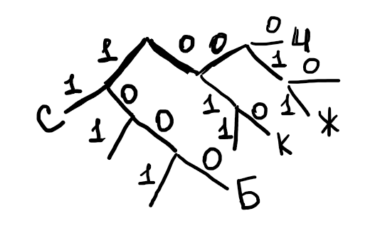 Тогда получим: А - 01; Б - 11; В - 0010; Г - 0011; Д - 10; Е - 000. Посчитаем общую длину для последовательности ГДЕЕДАДЕДА - 0011 10 000 000 10 01 10 000 10 01
