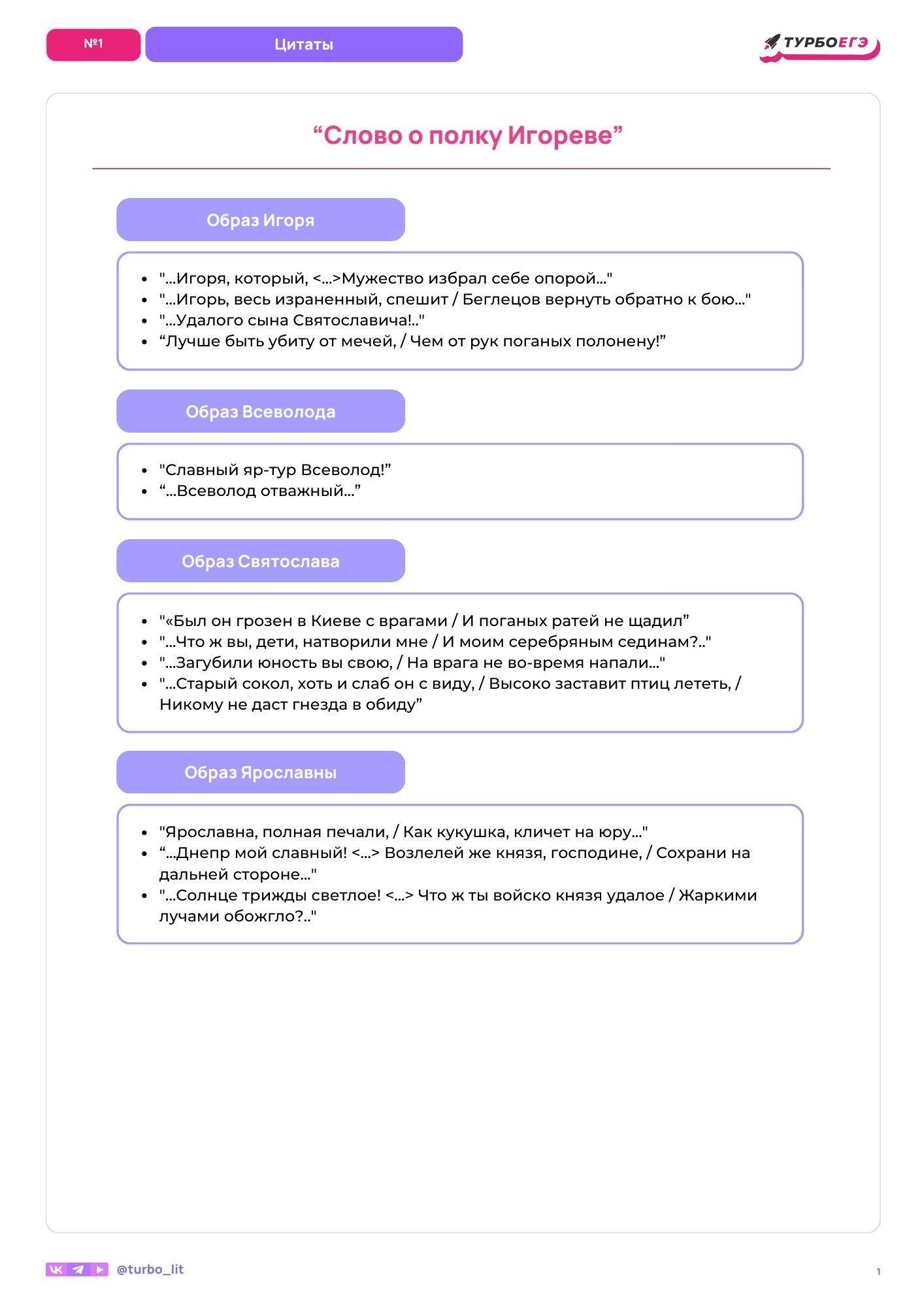 В этой домашке ты найдешь цитаты по следующим произведениям: "Слово о полку Игореве"