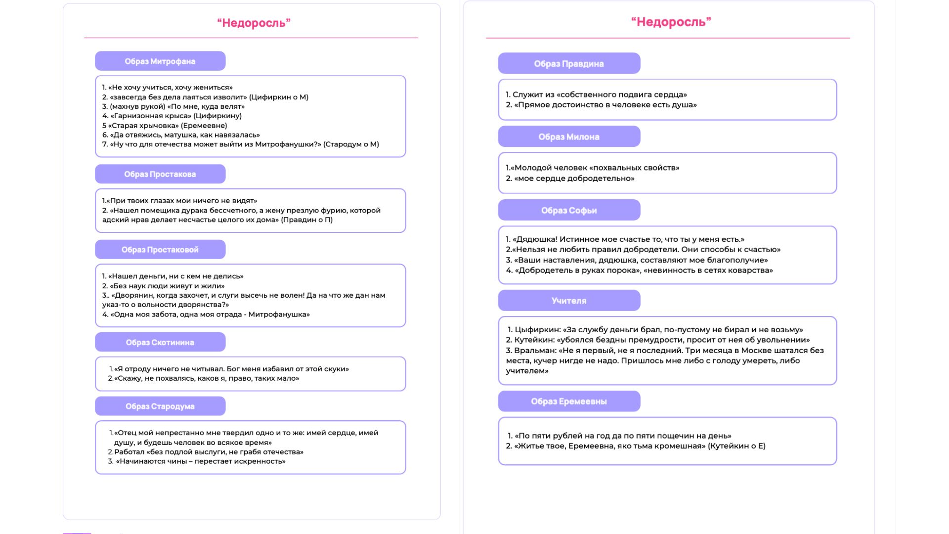 В этой домашке ты найдешь цитаты по следующим произведениям: "Недоросль"