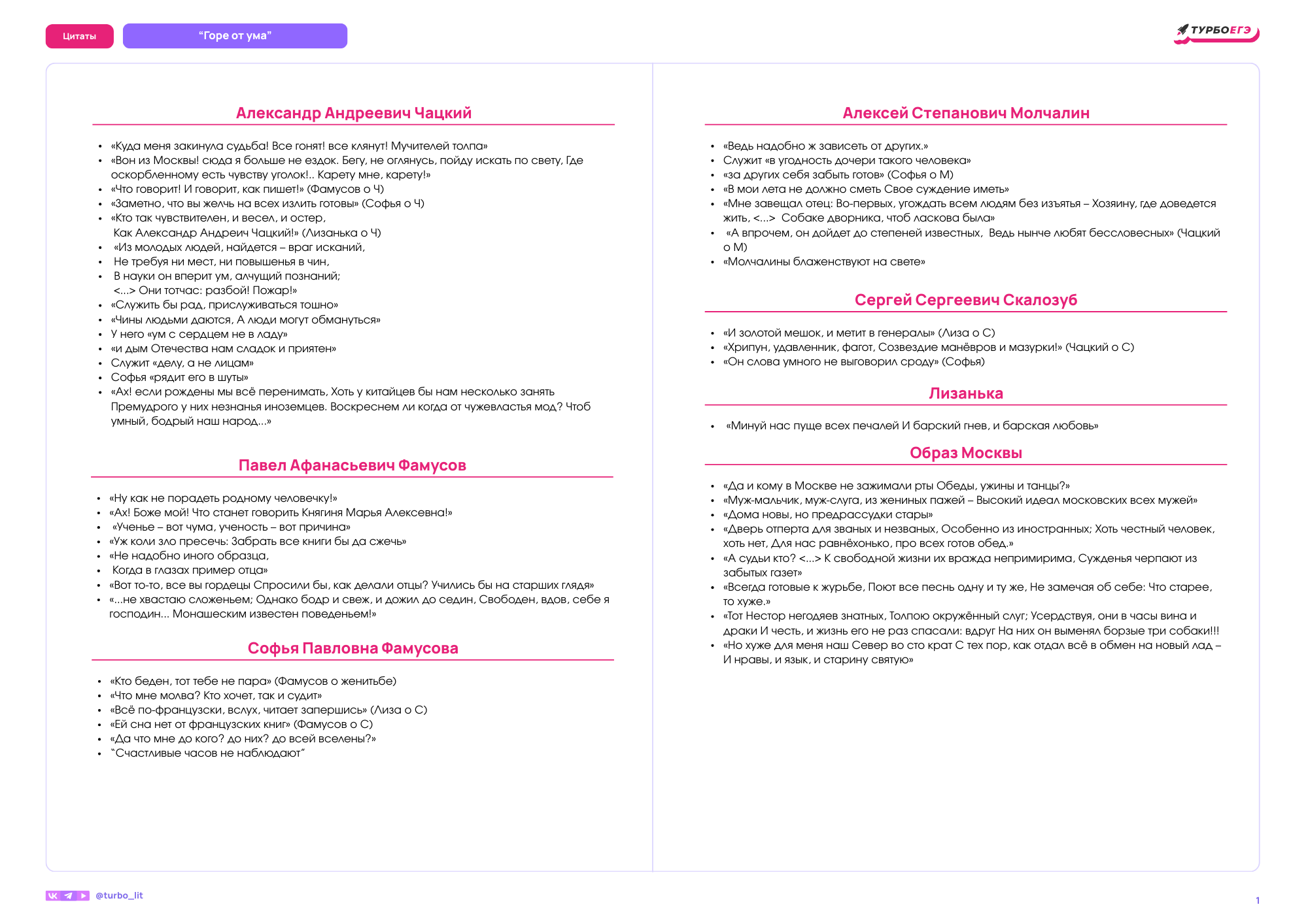 В этой домашке ты найдешь цитаты по следующим произведениям: "Горе от ума"