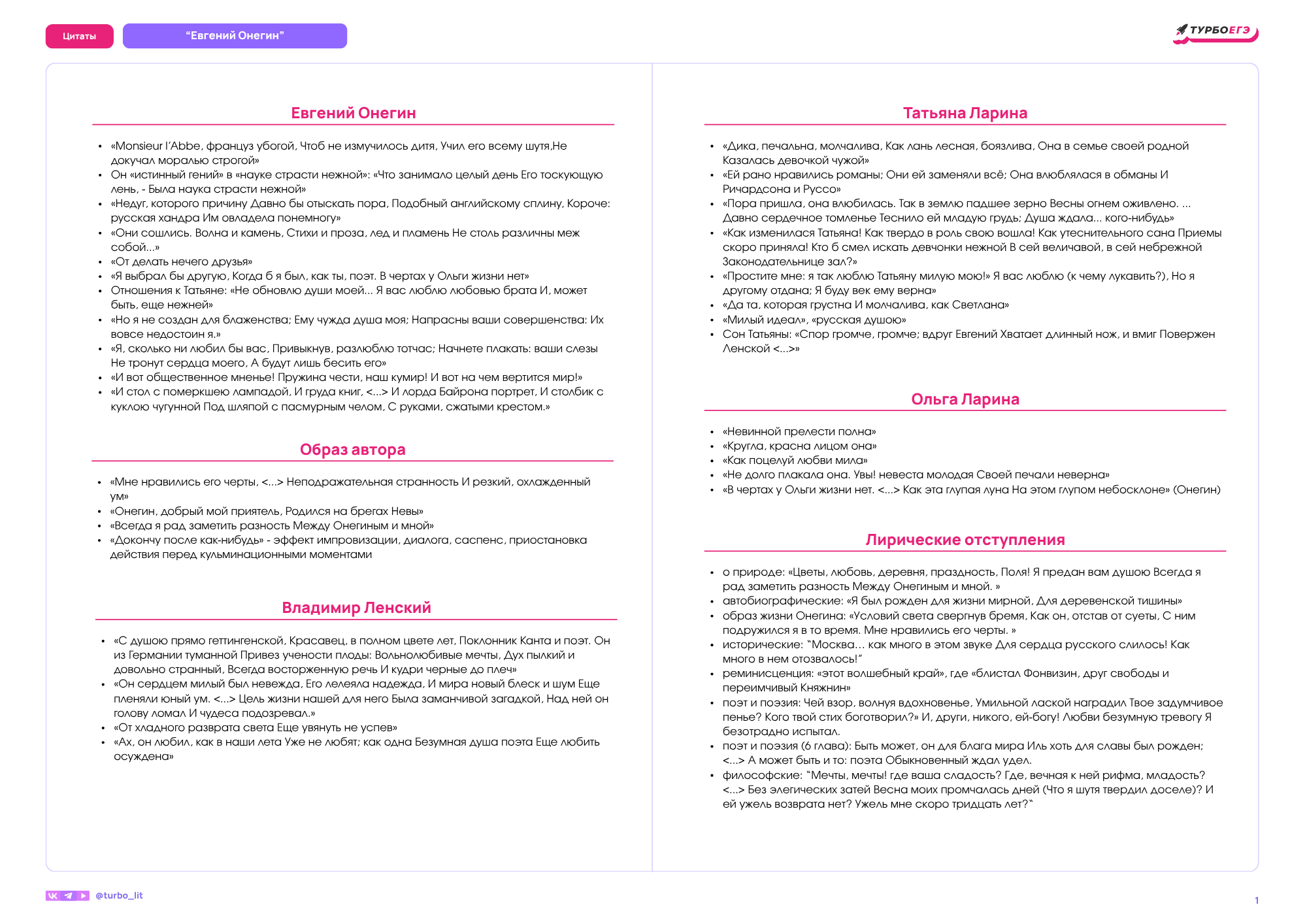 В этой домашке ты найдешь цитаты по следующим произведениям: "Евгений Онегин"