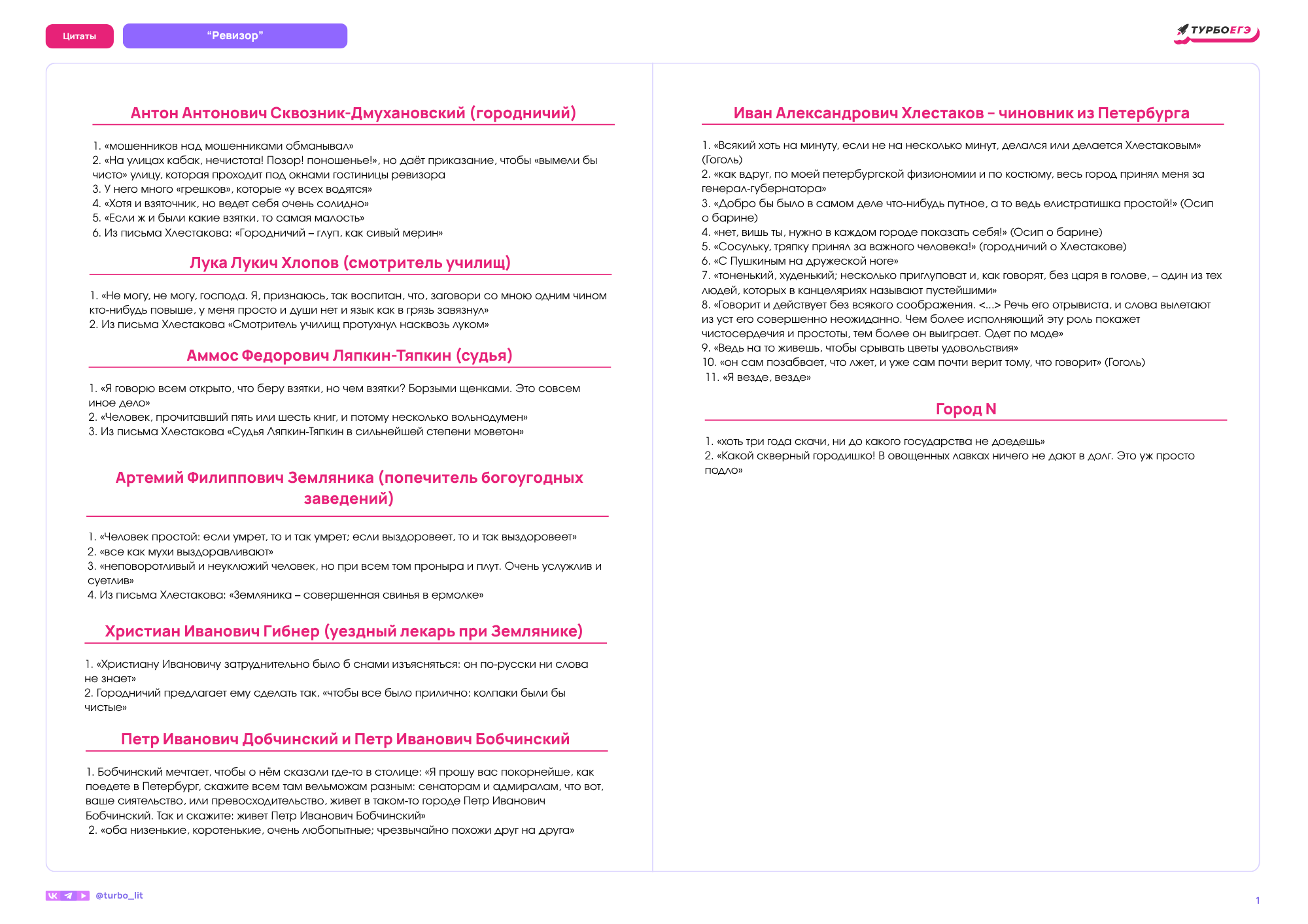 В этой домашке ты найдешь цитаты по следующим произведениям: "Ревизор"