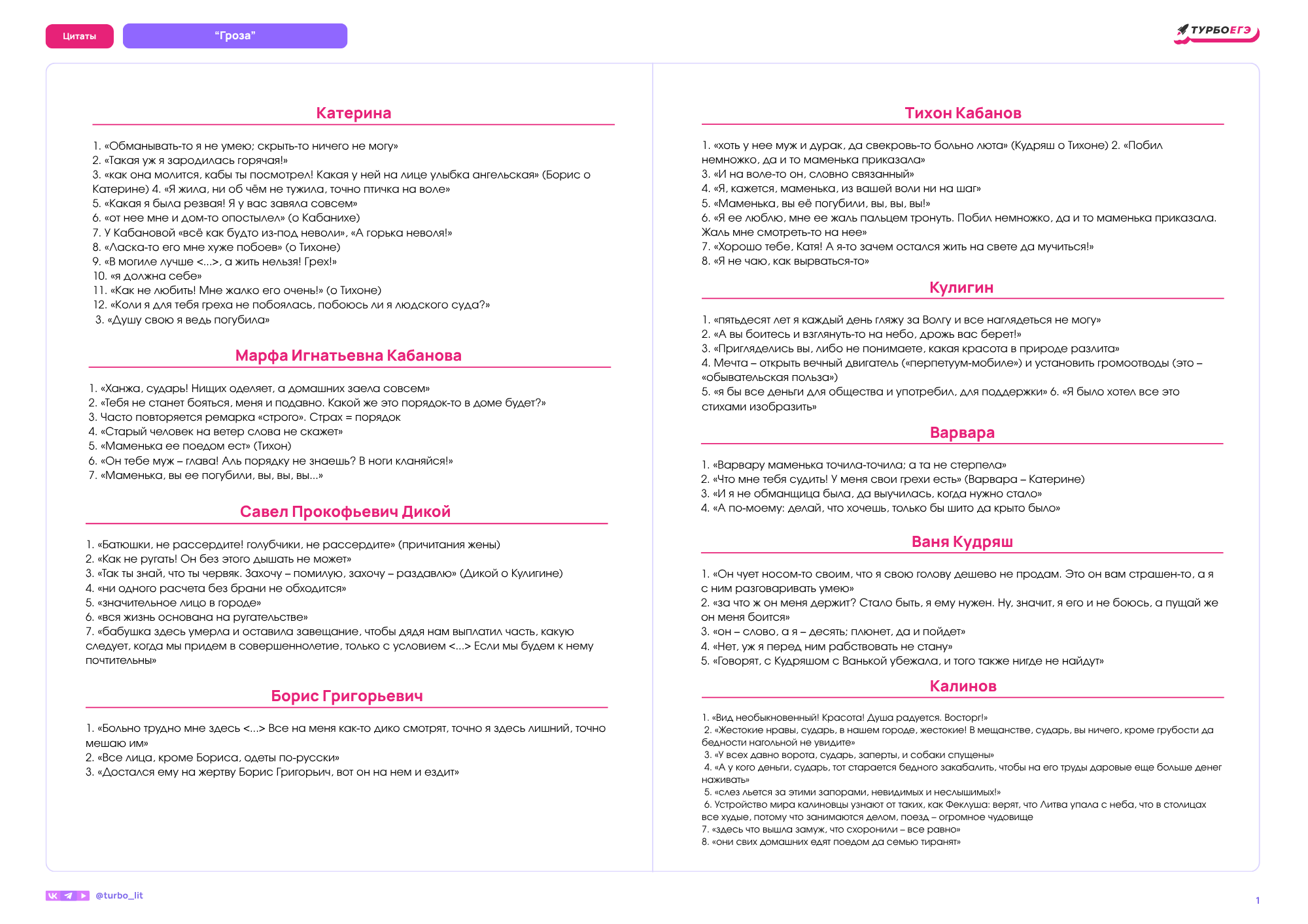 В этой домашке ты найдешь цитаты по следующим произведениям: "ГРОЗА"