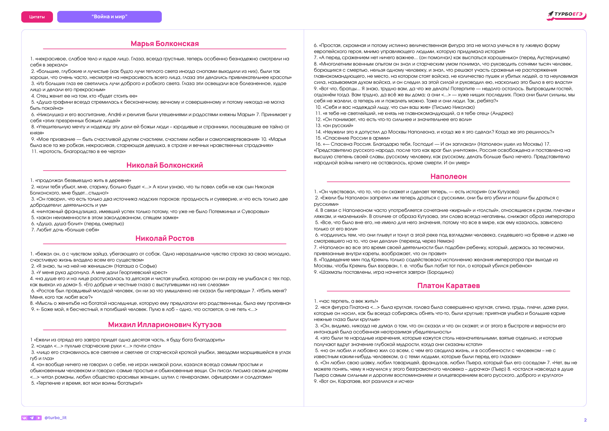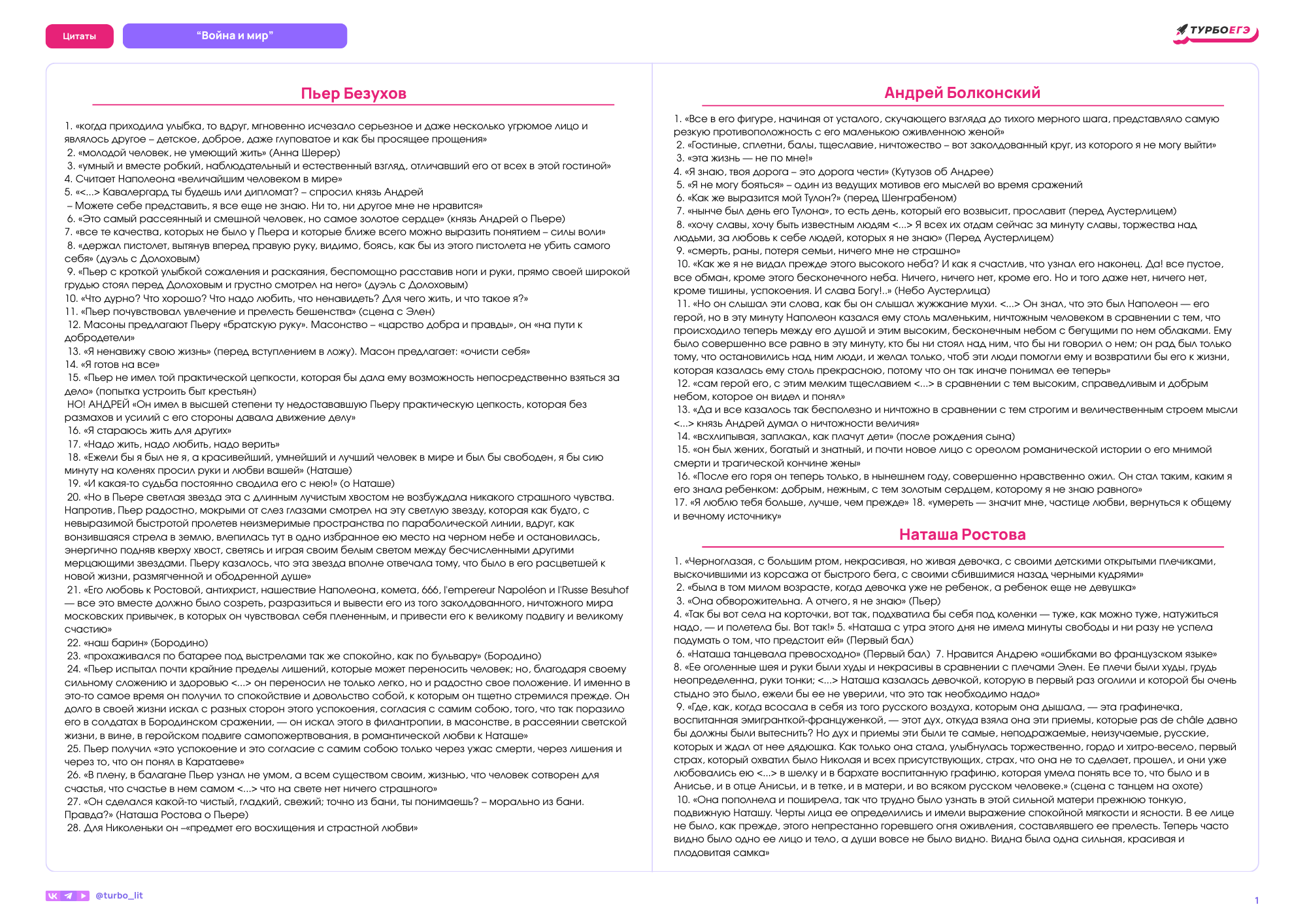 В этой домашке ты найдешь цитаты по следующим произведениям: "ВОЙНА И МИР"