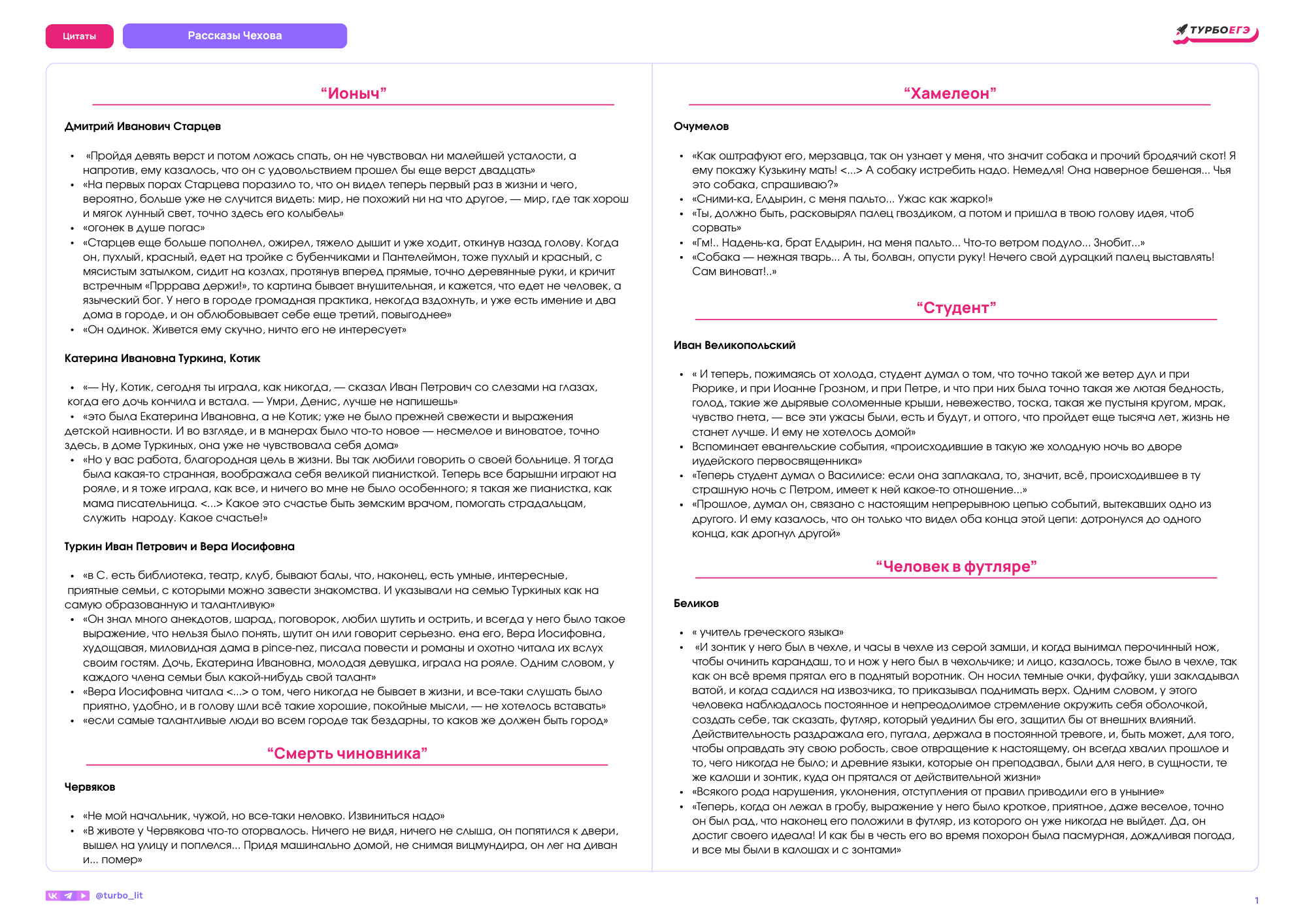 Твоя задача выучить цитаты, чтобы в дальнейшем использовать их при написании 5 и 11 сочинений. Ты можешь выбрать те, которые представлены в документе, или выбрать самостоятельно. Помни: цитата должна служить средством характеристики персонажа. Учим не просто так.