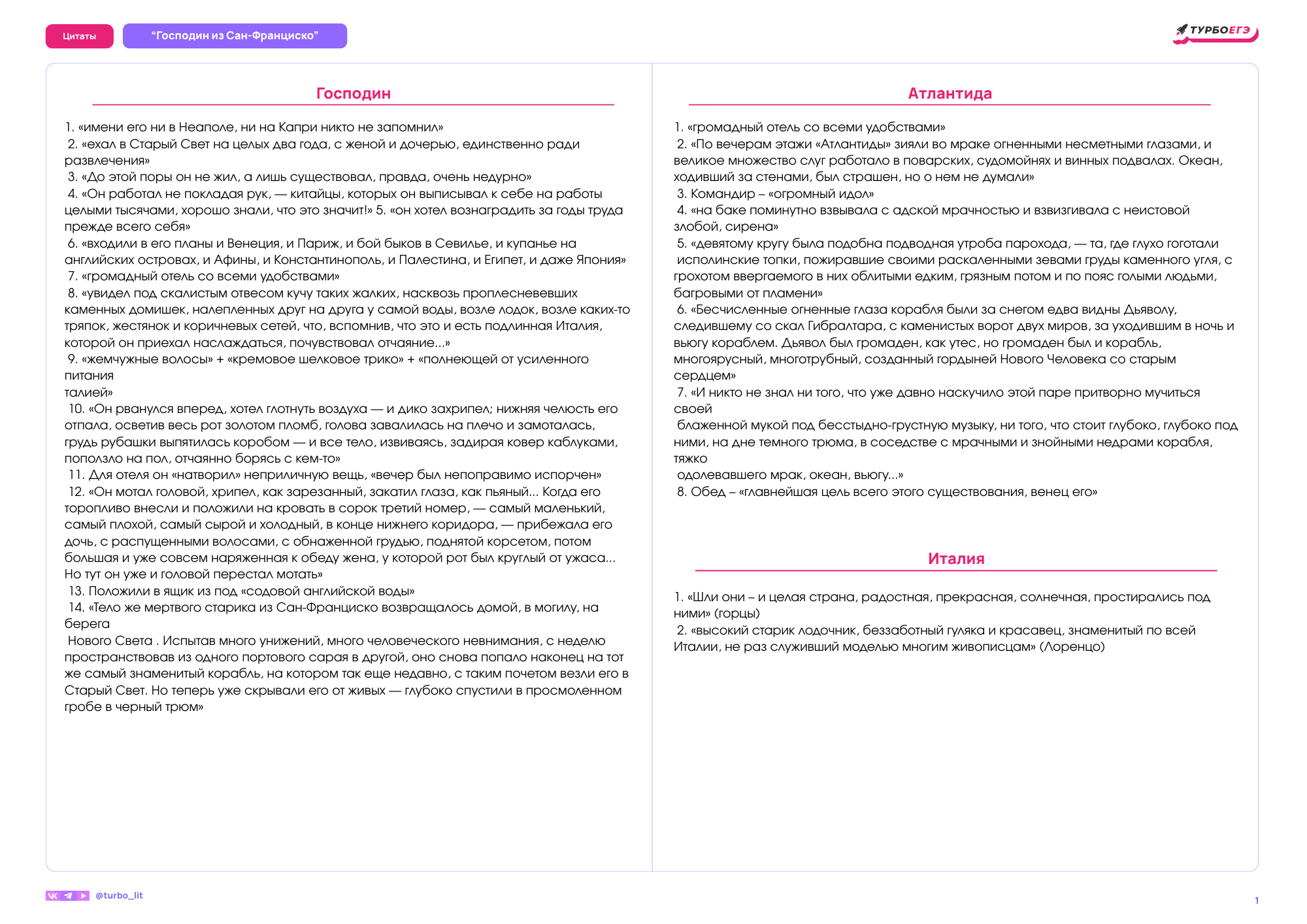 В этой домашке ты найдешь цитаты по следующим произведениям: "ГОСПОДИН ИЗ САН-ФРАНЦИСКО"
