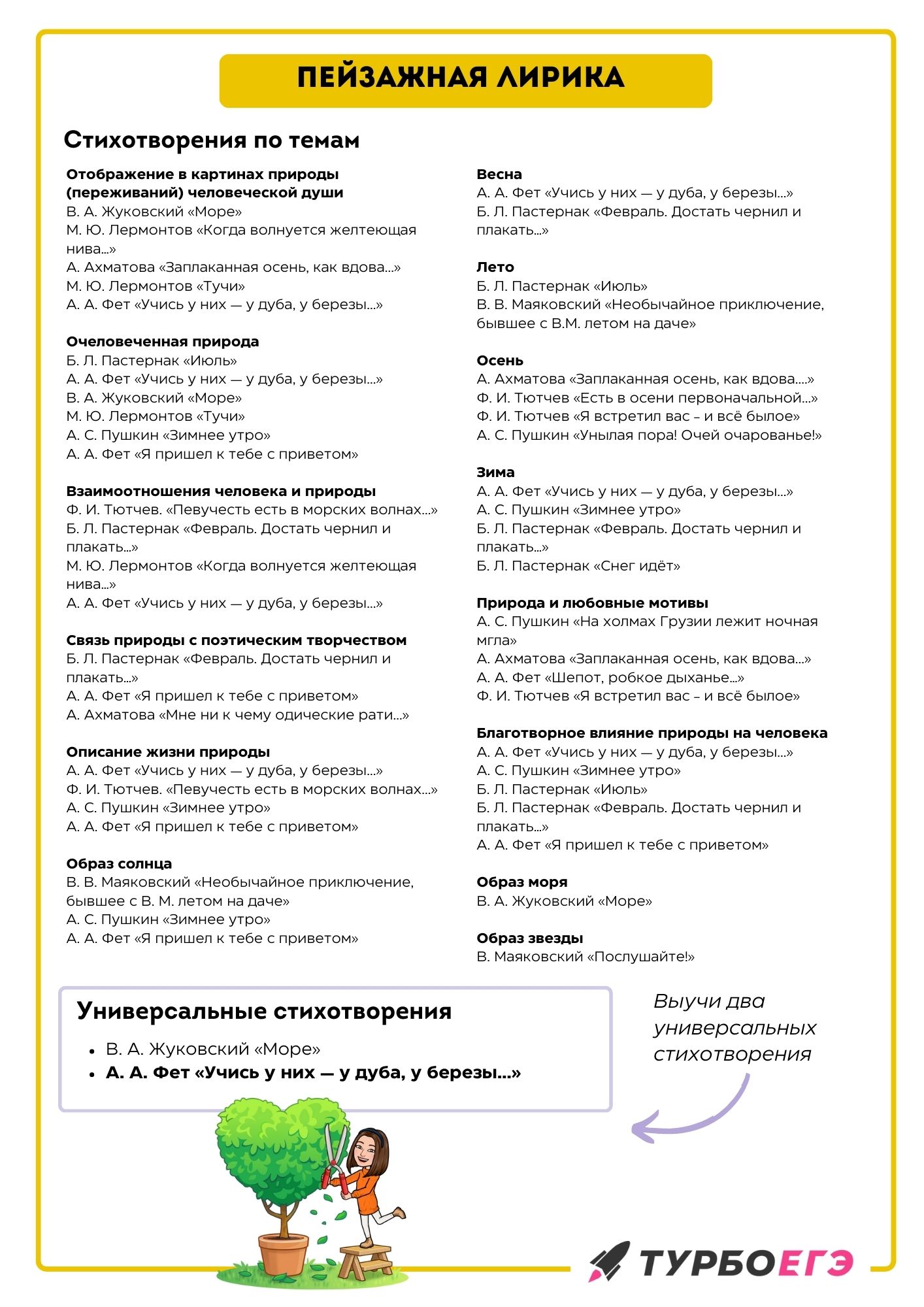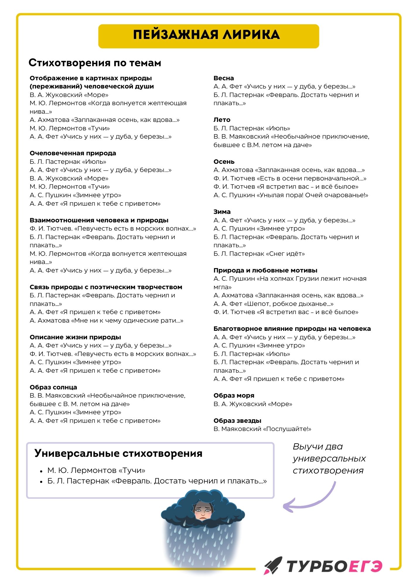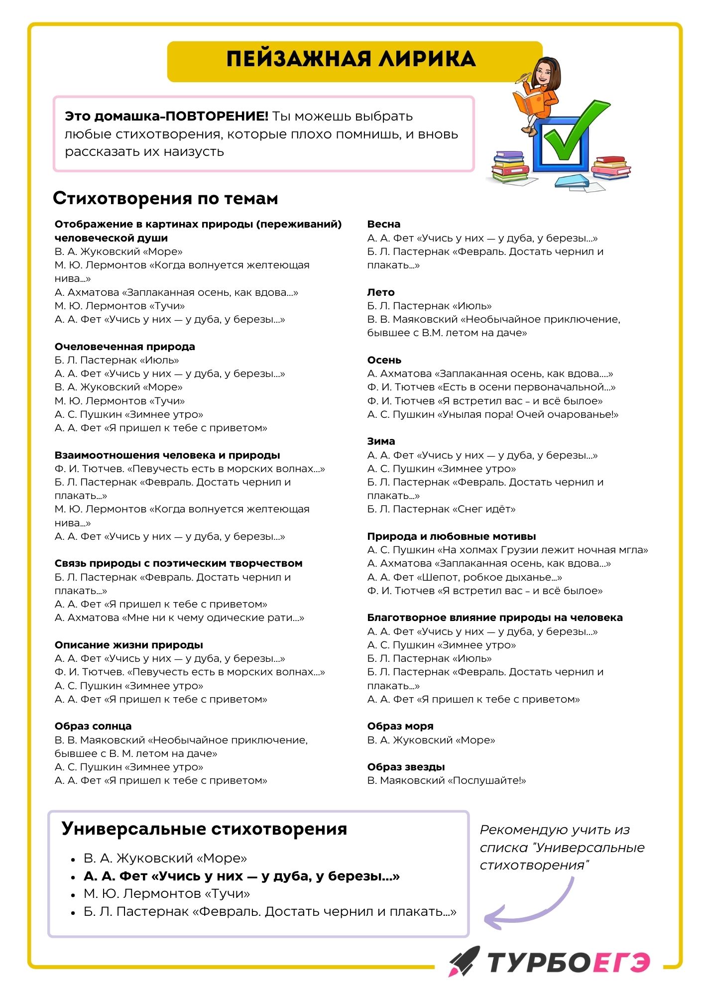 ЭТО ЗАЧЁТ-ПОВТОРЕНИЕ! Выбери любые стихотворения из пейзажной лирики (2 и более), которые плохо помнишь, и вновь расскажи их наизусть. Видео отправь в лс группы (в вк можно записывать видео-кружочек). Преподаватель проверит твоё чтение наизусть и пришлёт тебе кодовое слово. Введи его в поле ответа.
