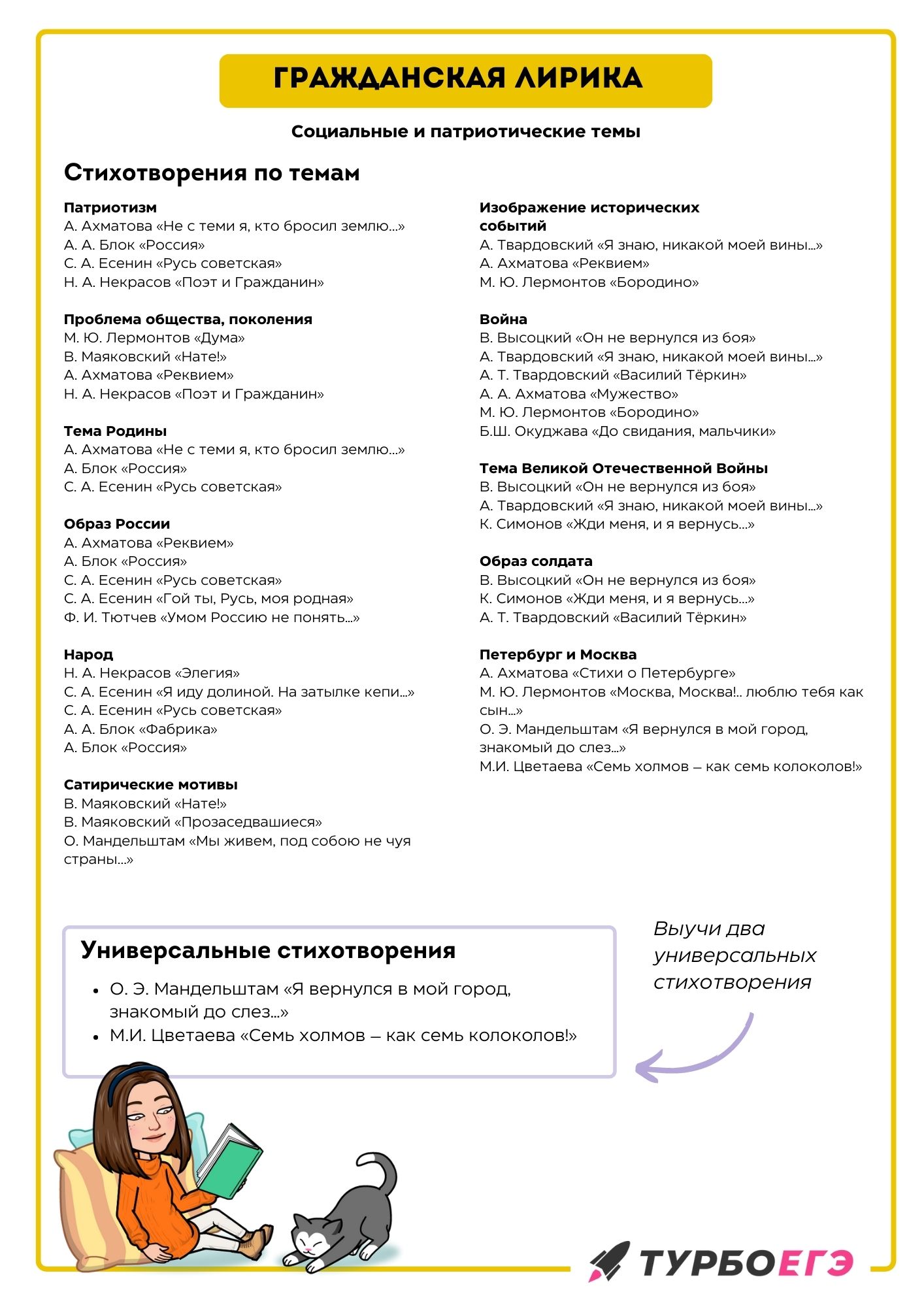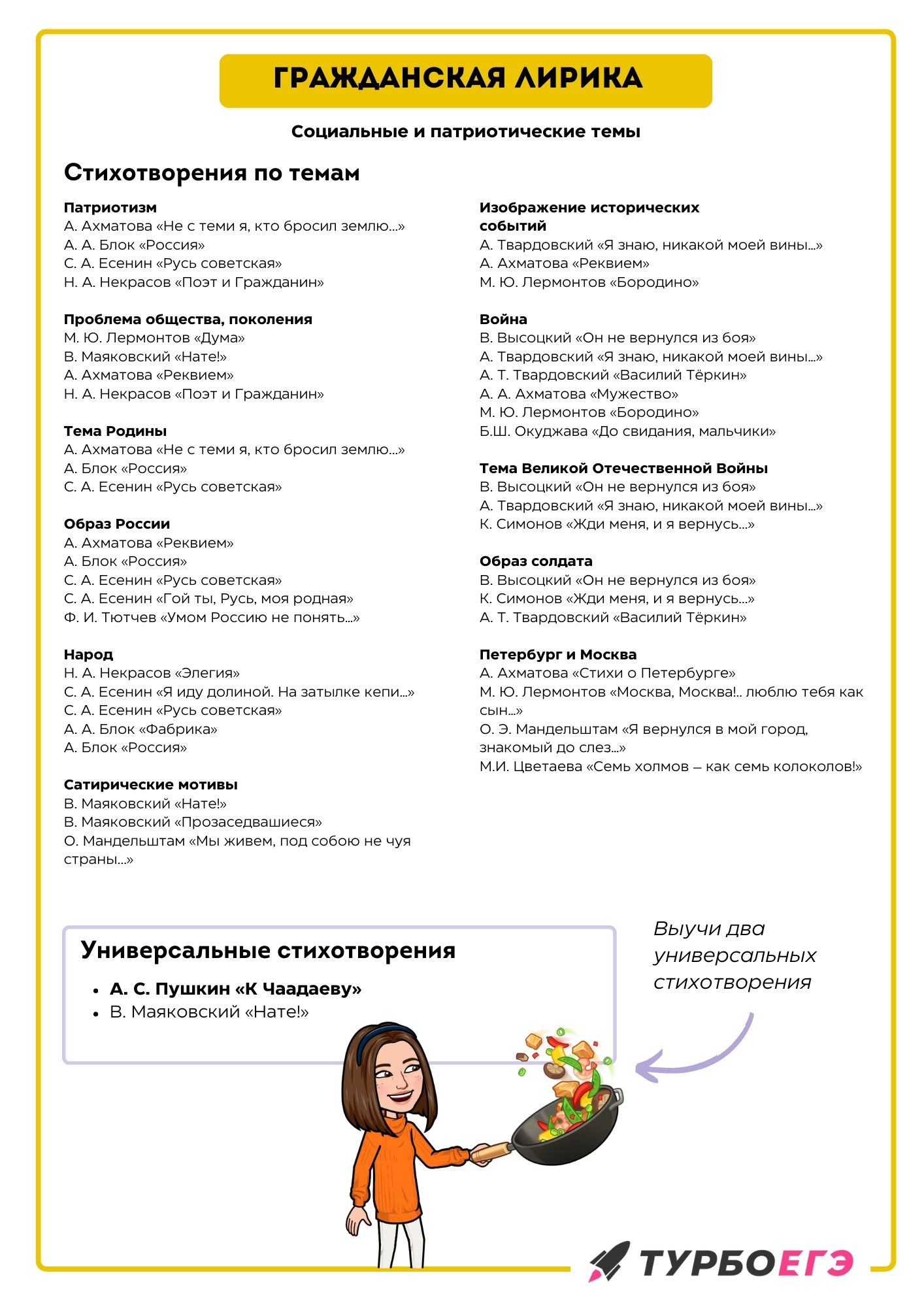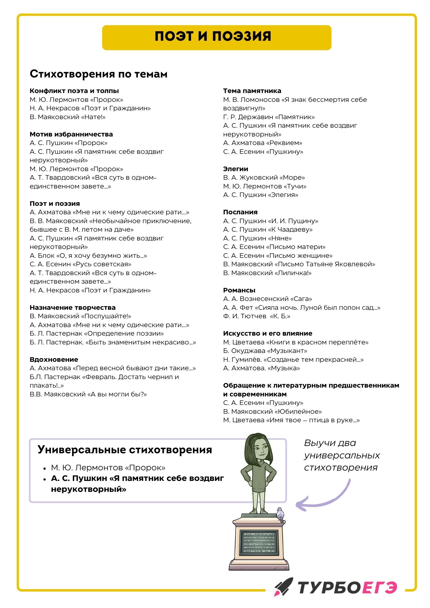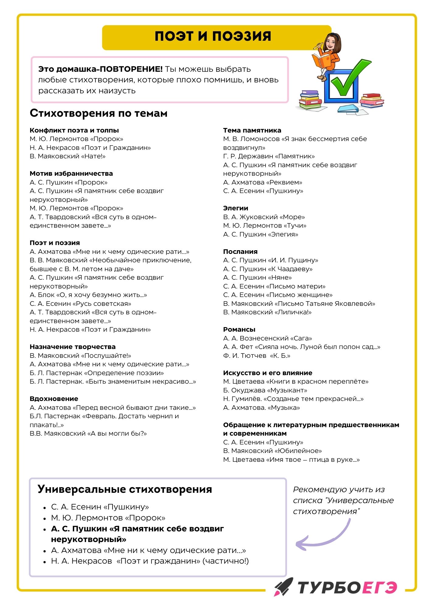 ЭТО ЗАЧЁТ-ПОВТОРЕНИЕ! Выбери любые стихотворения из блока "поэт и поэзия" (2 и более), которые плохо помнишь, и вновь расскажи их наизусть. Видео отправь в лс группы (в вк можно записывать видео-кружочек). Преподаватель проверит твоё чтение наизусть и пришлёт тебе кодовое слово. Введи его в поле ответа.